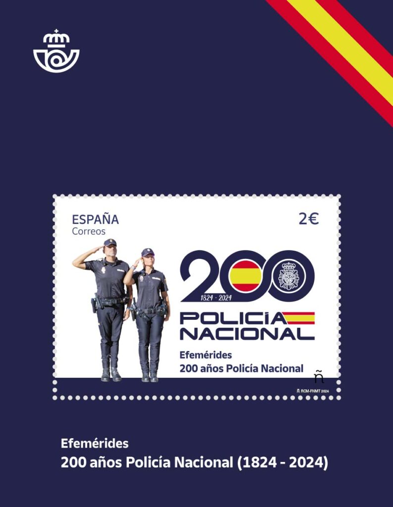 Hoy 12 de enero de 2024, se emitirá una Hoja bloque con un sello de correo de la serie «Efemérides» denominado «200 años Policía Nacional».